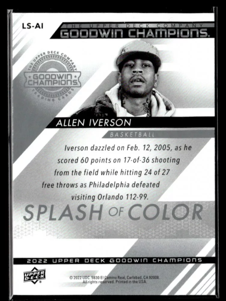 2022-23 Upper Deck Goodwin Champions Splash of Color 3D Lenticular 1:178 #LS-AI Allen Iverson