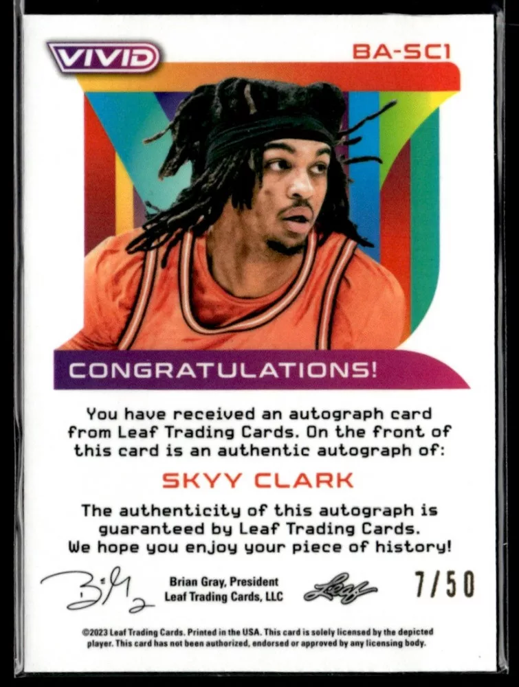 2023-23 LEAF VIVID Autographs Yellow #BA-SC1 Skyy Clark 07/50