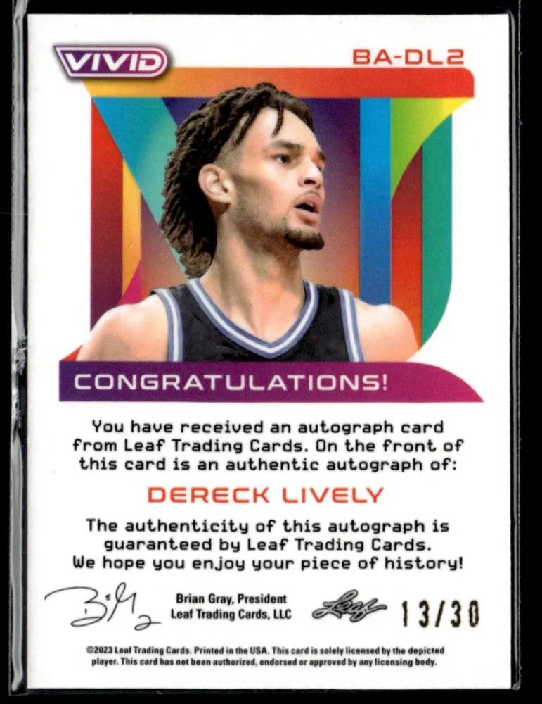 2023-23 LEAF VIVID Autographs Navy Blue #BA-DL2 Dereck Lively 13/30