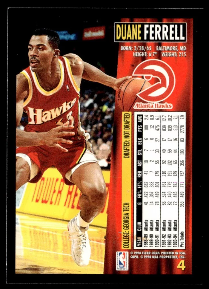 Az eladásra kínált 1994-95 Fleer #4 Duane Ferrell kosaras kártya NM-MT állapotban van. A kosaras kártyákat legtöbb esetben UP Platinum/Standard puha védőtokban és/vagy UP Toploader (kemény védőtok)-ben küldjük.