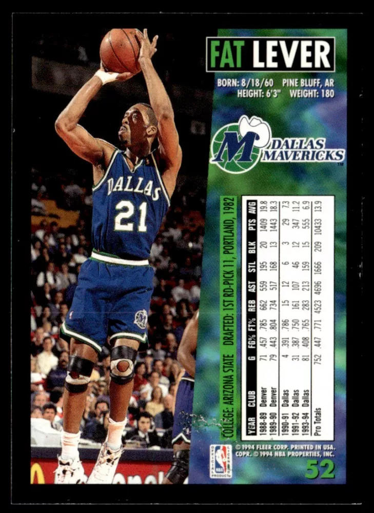 Az eladásra kínált 1994-95 Fleer #52 Fat Lever kosaras kártya NM-MT állapotban van. A kosaras kártyákat legtöbb esetben UP Platinum/Standard puha védőtokban és/vagy UP Toploader (kemény védőtok)-ben küldjük.
