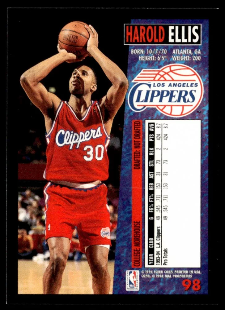 Az eladásra kínált 1994-95 Fleer #98 Harold Ellis kosaras kártya NM-MT állapotban van. A kosaras kártyákat legtöbb esetben UP Platinum/Standard puha védőtokban és/vagy UP Toploader (kemény védőtok)-ben küldjük.