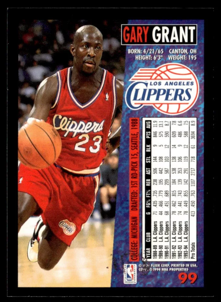 Az eladásra kínált 1994-95 Fleer #99 Gary Grant kosaras kártya NM-MT állapotban van. A kosaras kártyákat legtöbb esetben UP Platinum/Standard puha védőtokban és/vagy UP Toploader (kemény védőtok)-ben küldjük.