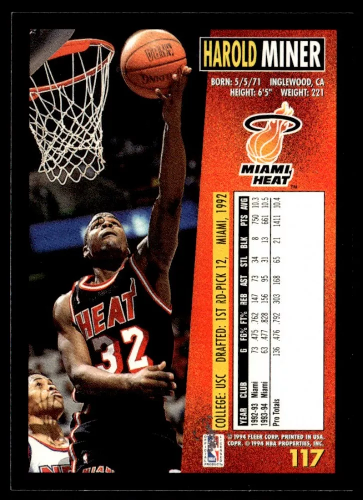 Az eladásra kínált 1994-95 Fleer #117 Harold Miner kosaras kártya NM-MT állapotban van. A kosaras kártyákat legtöbb esetben UP Platinum/Standard puha védőtokban és/vagy UP Toploader (kemény védőtok)-ben küldjük.