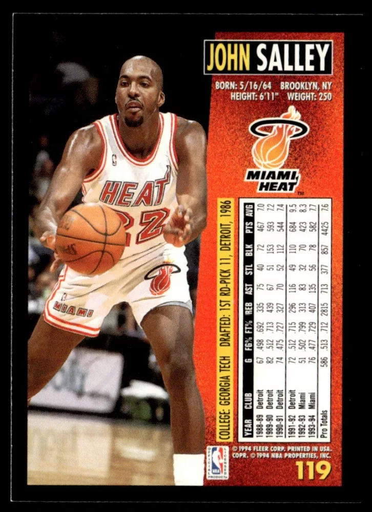 Az eladásra kínált 1994-95 Fleer #119 John Salley kosaras kártya NM-MT állapotban van. A kosaras kártyákat legtöbb esetben UP Platinum/Standard puha védőtokban és/vagy UP Toploader (kemény védőtok)-ben küldjük.