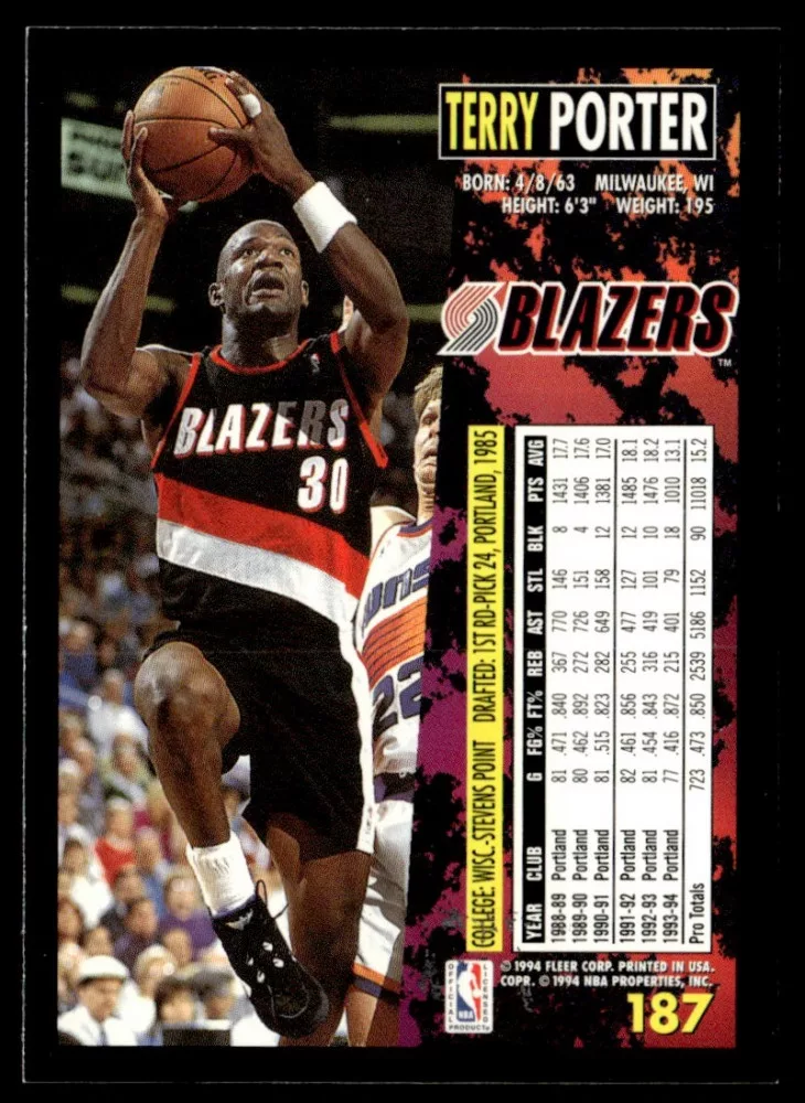 Az eladásra kínált 1994-95 Fleer #187 Terry Porter kosaras kártya NM-MT állapotban van. A kosaras kártyákat legtöbb esetben UP Platinum/Standard puha védőtokban és/vagy UP Toploader (kemény védőtok)-ben küldjük.