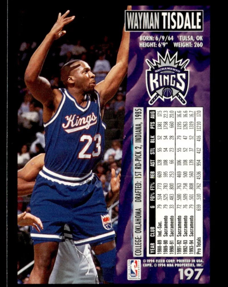 Az eladásra kínált 1994-95 Fleer #197 Wayman Tisdale kosaras kártya NM-MT állapotban van. A kosaras kártyákat legtöbb esetben UP Platinum/Standard puha védőtokban és/vagy UP Toploader (kemény védőtok)-ben küldjük.