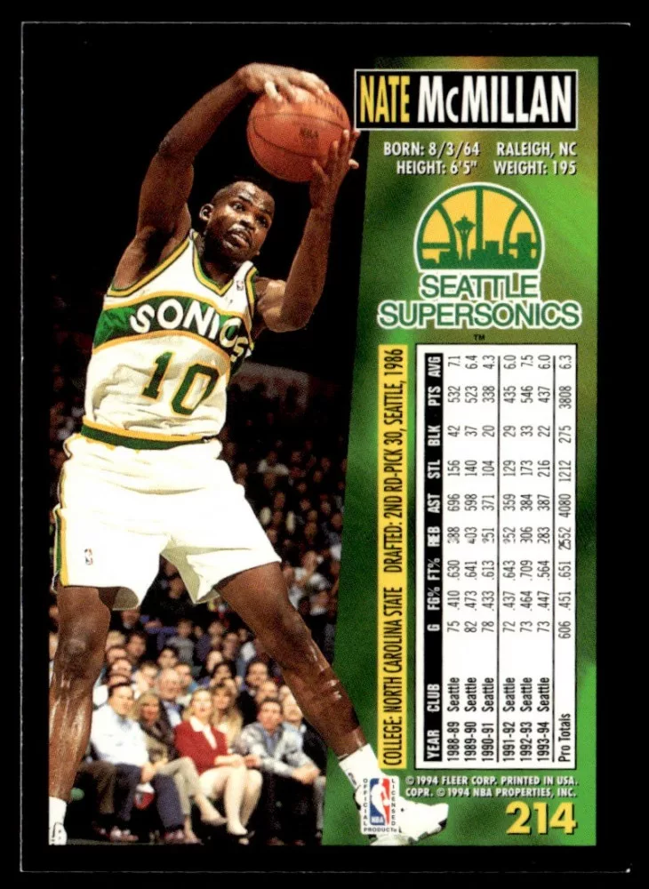 1994-95 Fleer #214 Nate McMillan