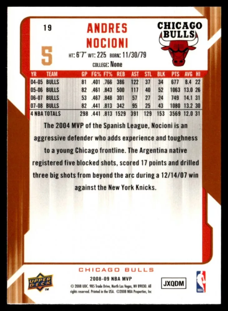 2008-2009 Upper Deck MVP  #19 Andres Nocioni