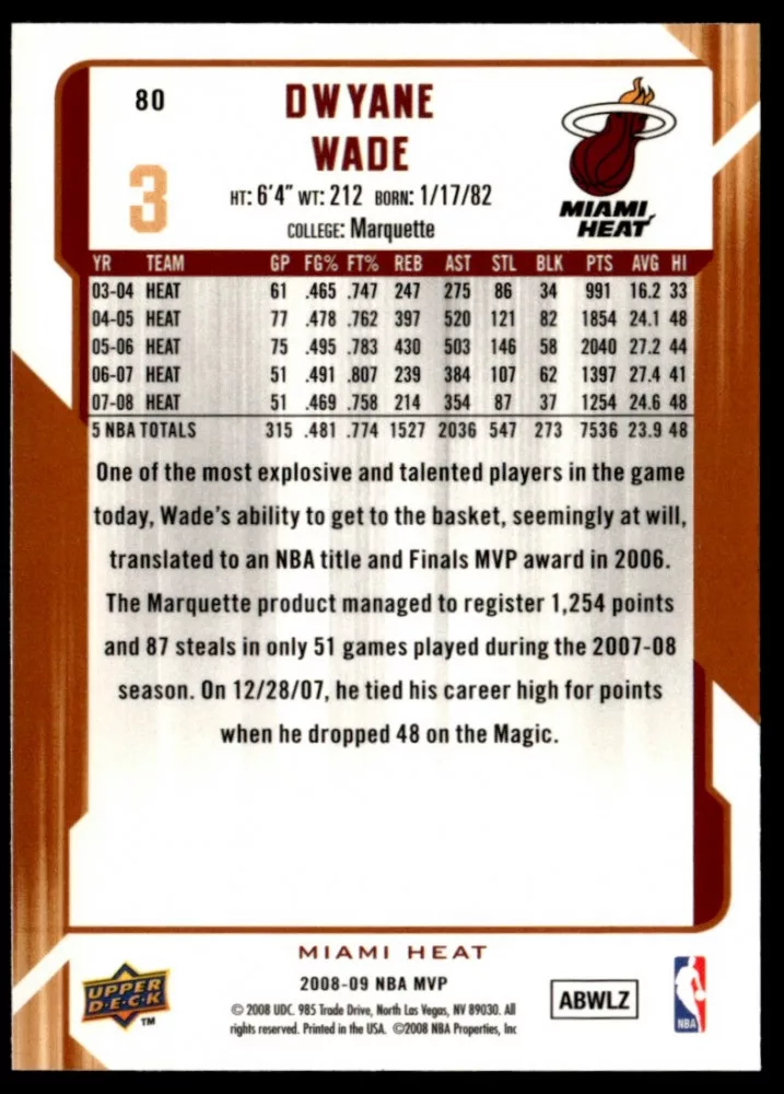 2008-2009 Upper Deck MVP  #80 Dwyane Wade