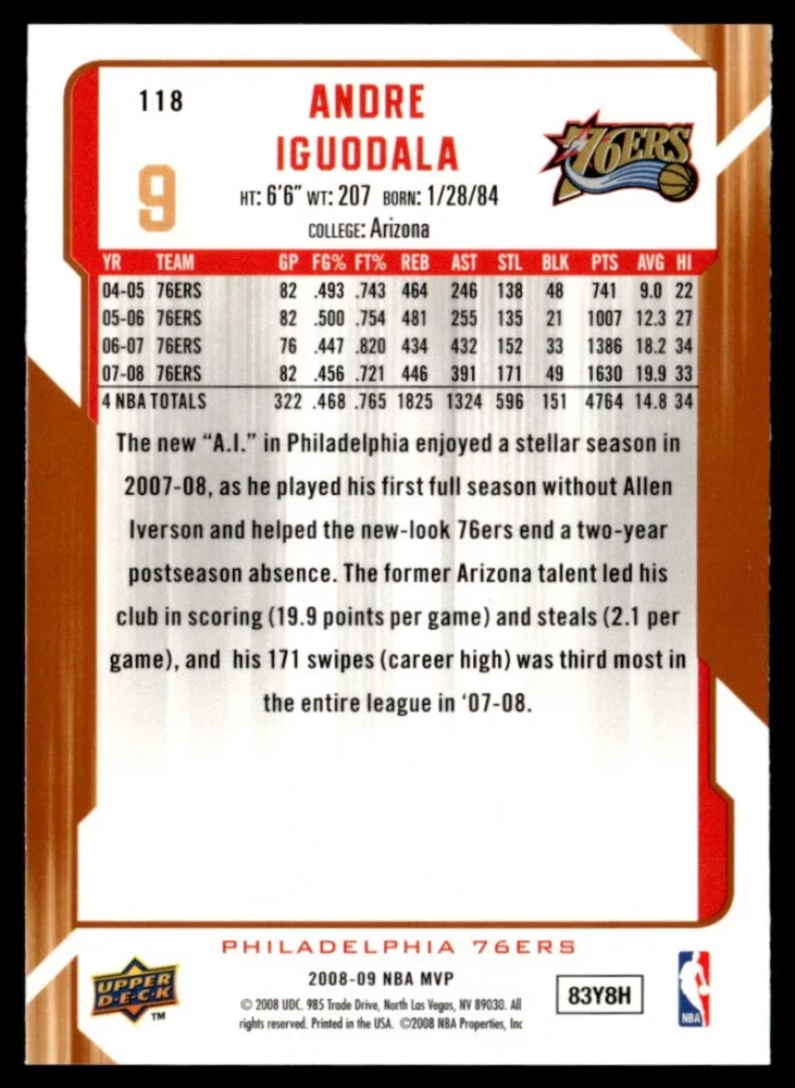 2008-2009 Upper Deck MVP  #118 Andre Iguodala