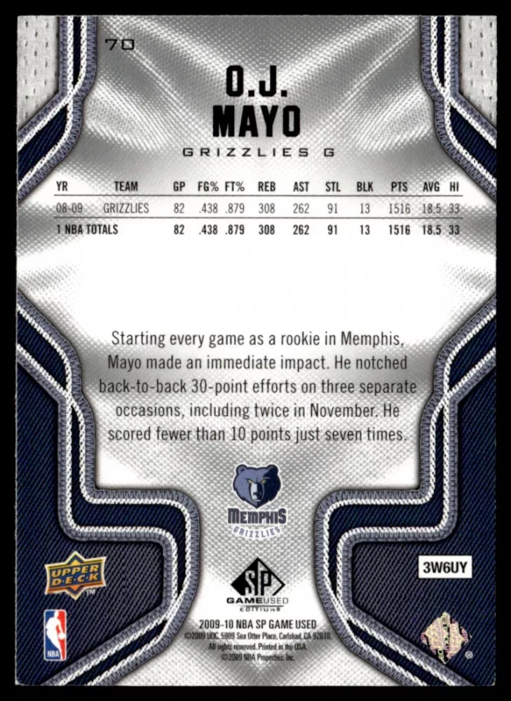 2009-10 SP Game Used  #70 O.J. Mayo