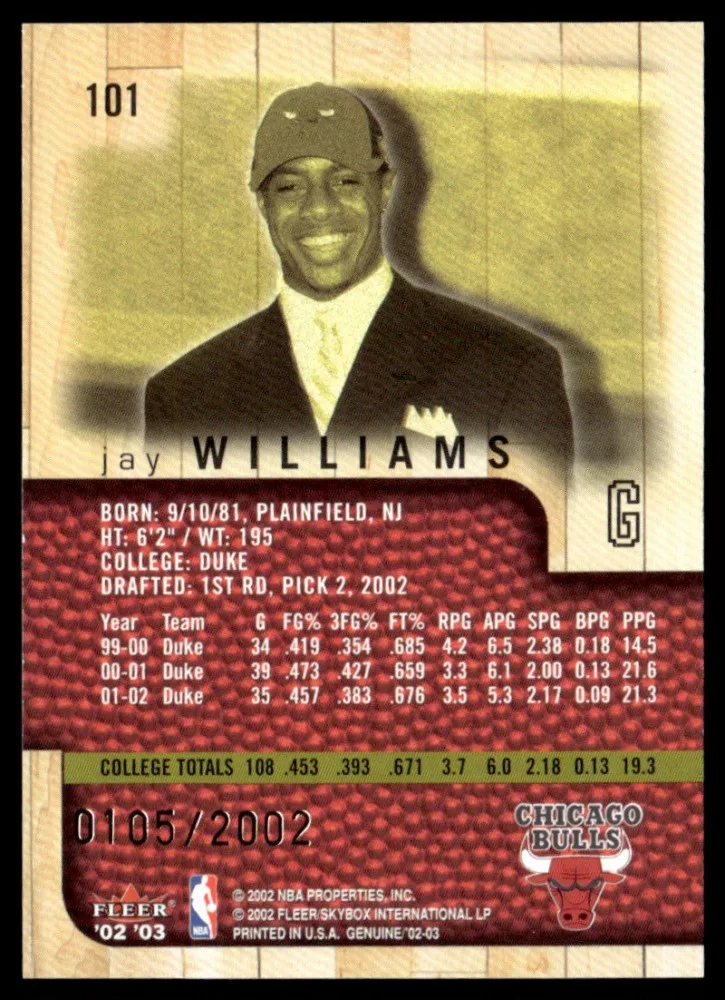 2002-2003 Fleer Genuine  #101 Jay Williams 0105/2002
