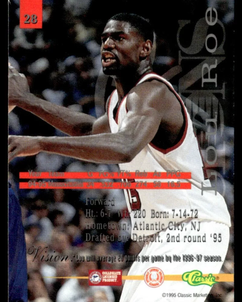 Az eladásra kínált 1995-96 Classic Visions #28 Lou Roe kosaras kártya NM-MT állapotban van. A kosaras kártyákat legtöbb esetben UP Platinum/Standard puha védőtokban és/vagy UP Toploader (kemény védőtok)-ben küldjük.