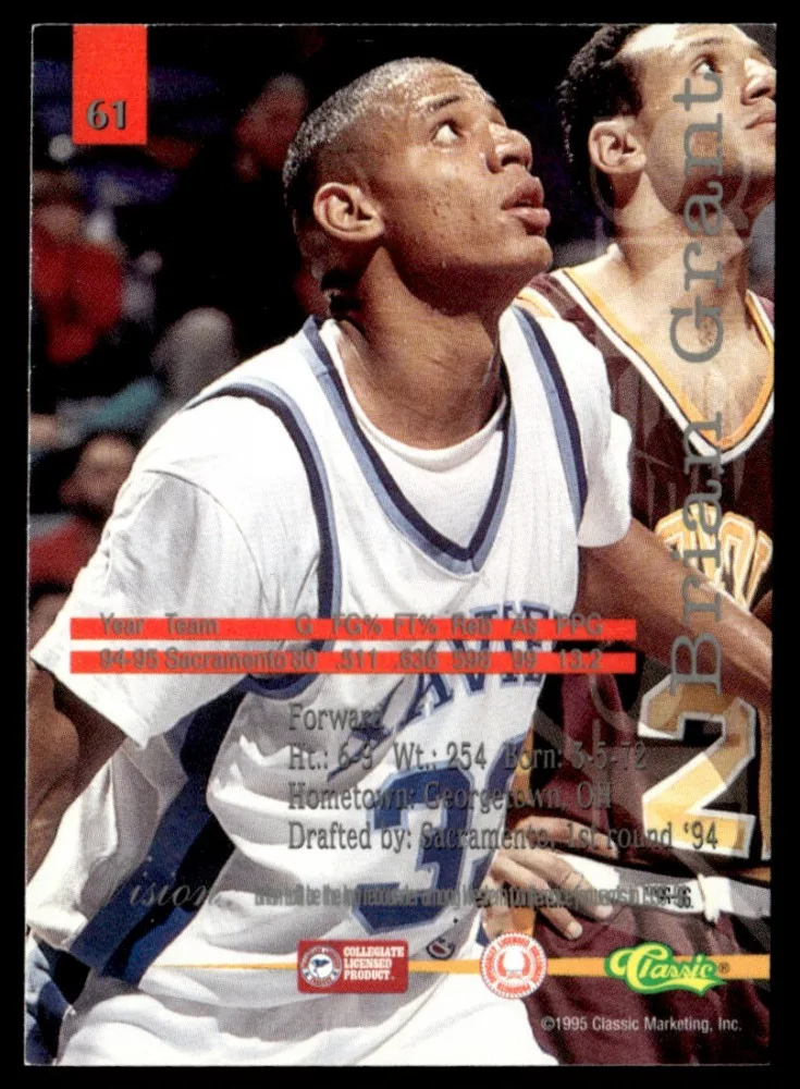 Az eladásra kínált 1995-96 Classic Visions #61 Brian Grant kosaras kártya NM-MT állapotban van. A kosaras kártyákat legtöbb esetben UP Platinum/Standard puha védőtokban és/vagy UP Toploader (kemény védőtok)-ben küldjük.
