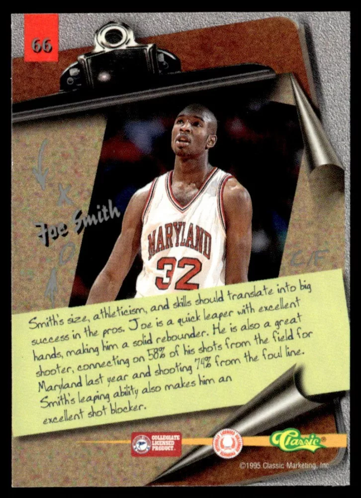 Az eladásra kínált 1995-96 Classic Visions #66 Joe Smith kosaras kártya NM-MT állapotban van. A kosaras kártyákat legtöbb esetben UP Platinum/Standard puha védőtokban és/vagy UP Toploader (kemény védőtok)-ben küldjük.