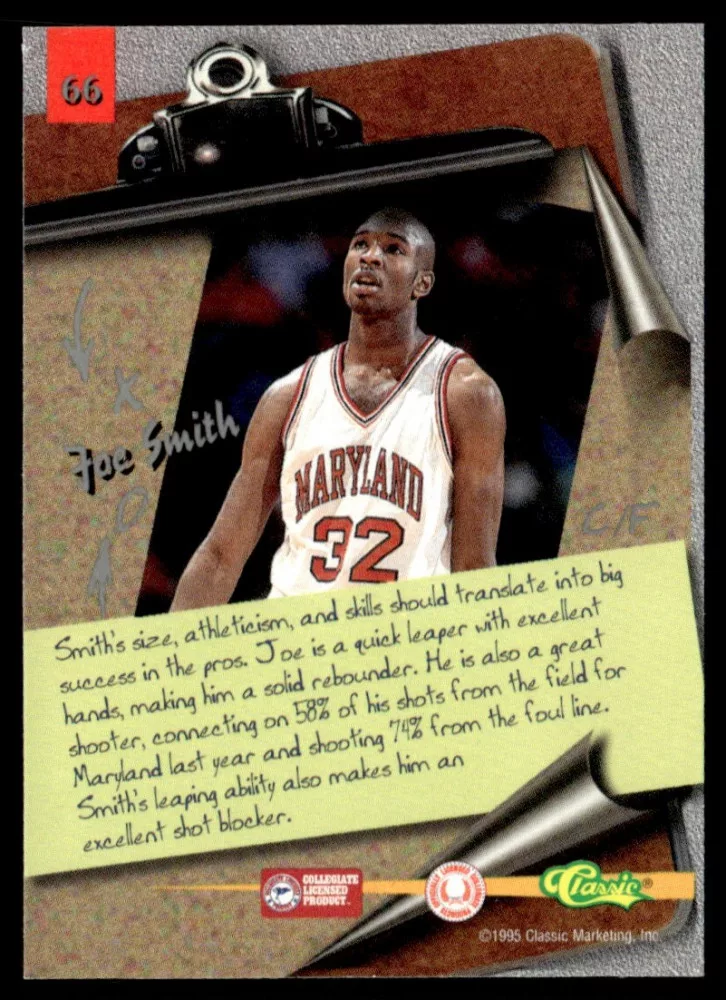 Az eladásra kínált 1995-96 Classic Visions #66 Joe Smith kosaras kártya NM-MT állapotban van. A kosaras kártyákat legtöbb esetben UP Platinum/Standard puha védőtokban és/vagy UP Toploader (kemény védőtok)-ben küldjük.