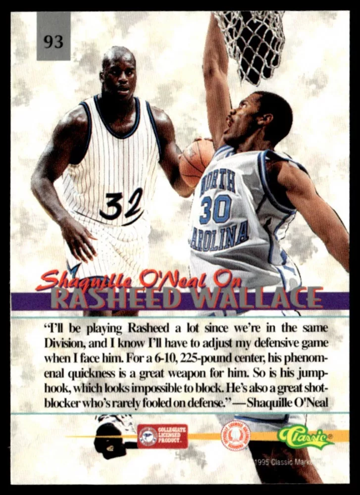 Az eladásra kínált 1995-96 Classic Visions #93 Rasheed Wallace kosaras kártya NM-MT állapotban van. A kosaras kártyákat legtöbb esetben UP Platinum/Standard puha védőtokban és/vagy UP Toploader (kemény védőtok)-ben küldjük.