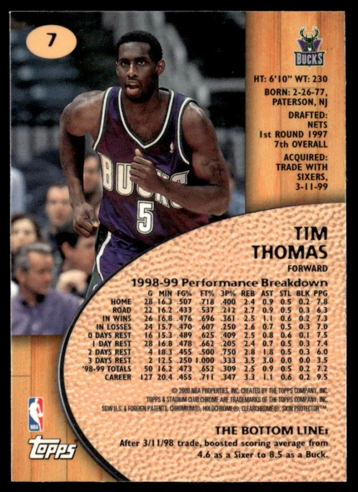 Az eladásra kínált 1999-2000 Stadium Club Chrome #7 Tim Thomas kosaras kártya NM-MT állapotban van. A kosaras kártyákat legtöbb esetben UP Platinum/Standard puha védőtokban és/vagy UP Toploader (kemény védőtok)-ben küldjük.