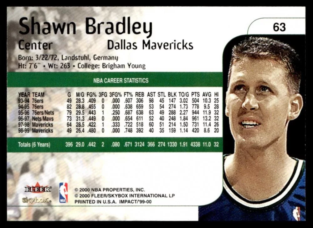 1999-2000 SkyBox Impact #63 Shawn Bradley