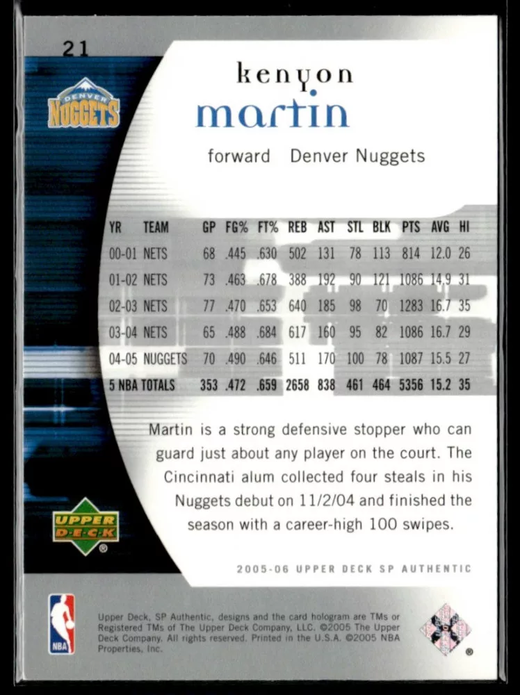 Az eladásra kínált 2005-06 SP Authentic #21 Kenyon Martin kosaras kártya NM-MT állapotban van. A kosaras kártyákat legtöbb esetben UP Platinum/Standard puha védőtokban és/vagy UP Toploader (kemény védőtok)-ben küldjük.