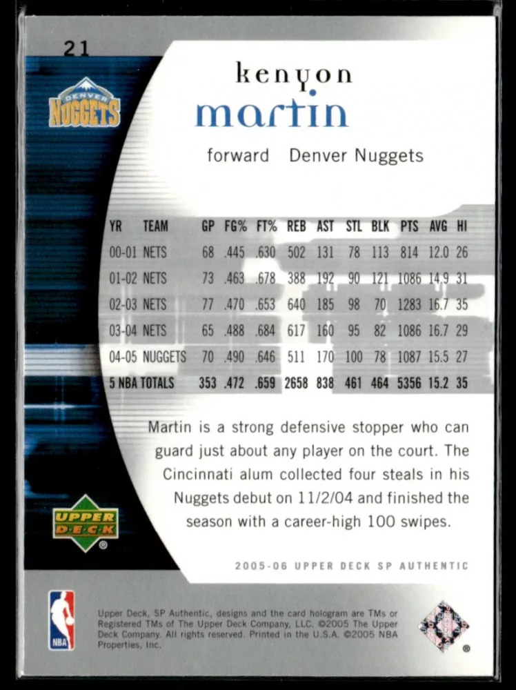 2005-06 SP Authentic  #21 Kenyon Martin