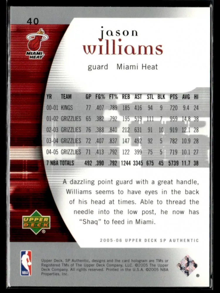 Az eladásra kínált 2005-06 SP Authentic #40 Jason Williams kosaras kártya NM-MT állapotban van. A kosaras kártyákat legtöbb esetben UP Platinum/Standard puha védőtokban és/vagy UP Toploader (kemény védőtok)-ben küldjük.