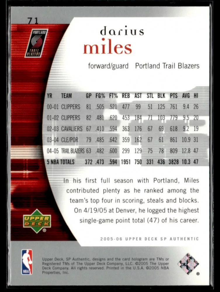 2005-06 SP Authentic #71 Darius Miles