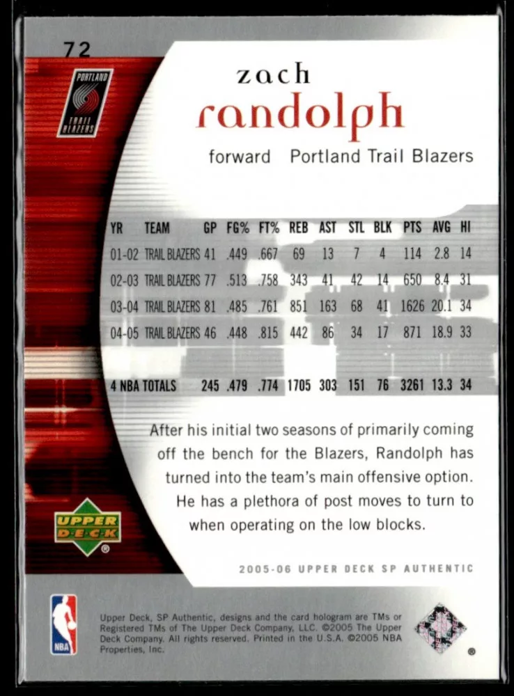2005-06 SP Authentic #72 Zach Randolph