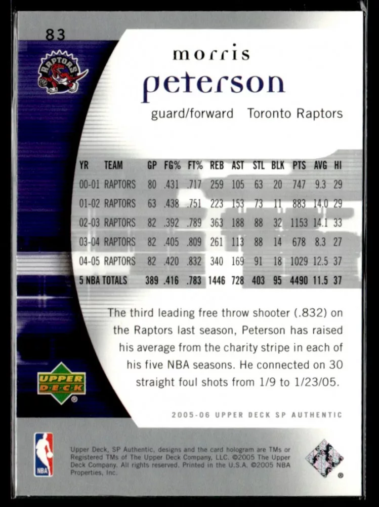 Az eladásra kínált 2005-06 SP Authentic #83 Morris Peterson kosaras kártya NM-MT állapotban van. A kosaras kártyákat legtöbb esetben UP Platinum/Standard puha védőtokban és/vagy UP Toploader (kemény védőtok)-ben küldjük.