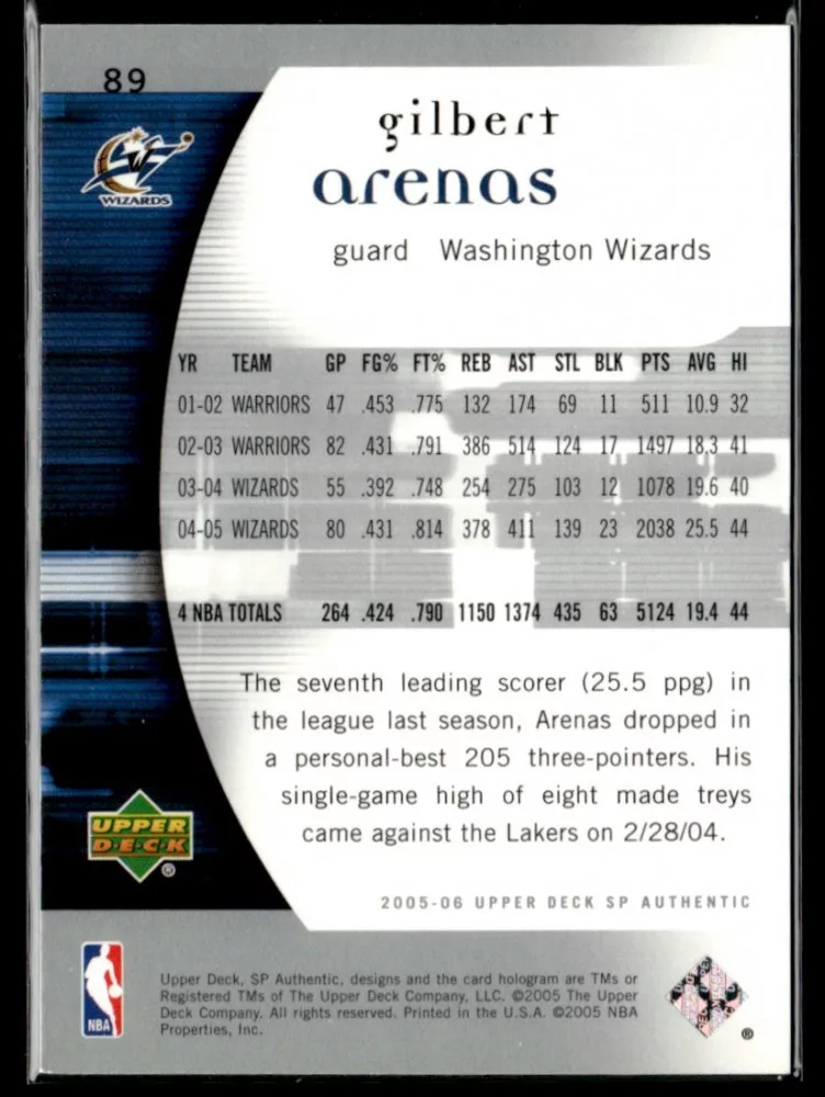 2005-06 SP Authentic  #89 Gilbert Arenas