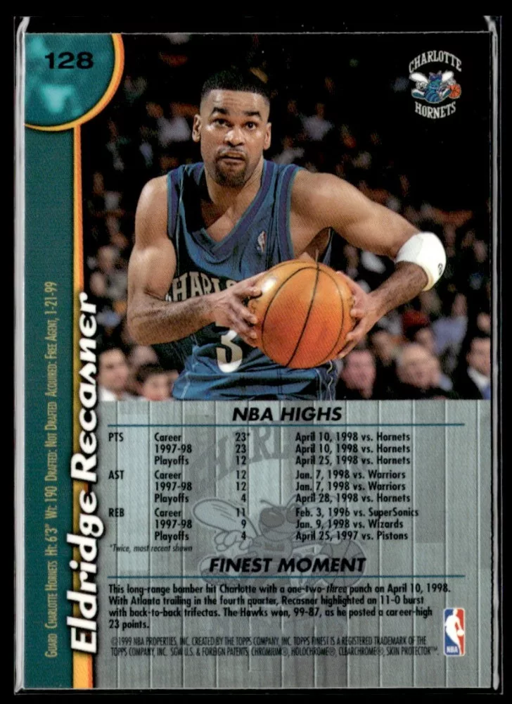 Az eladásra kínált 1998-00 Finest #128 Eldridge Recasner kosaras kártya NM-MT állapotban van. A kosaras kártyákat legtöbb esetben UP Platinum/Standard puha védőtokban és/vagy UP Toploader (kemény védőtok)-ben küldjük.