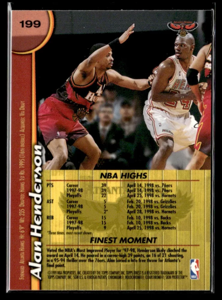 Az eladásra kínált 1998-99 Finest #199 Alan Henderson kosaras kártya NM-MT állapotban van. A kosaras kártyákat legtöbb esetben UP Platinum/Standard puha védőtokban és/vagy UP Toploader (kemény védőtok)-ben küldjük.