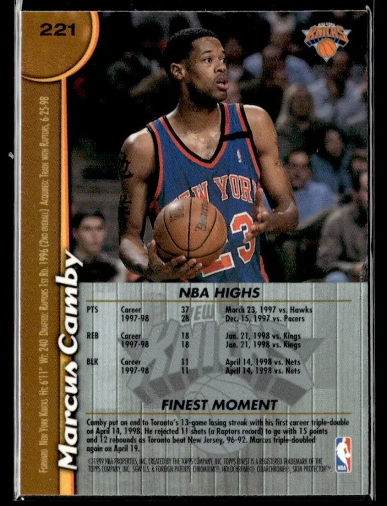 Az eladásra kínált 1998-99 Finest #221 Marcus Camby kosaras kártya NM-MT állapotban van. A kosaras kártyákat legtöbb esetben UP Platinum/Standard puha védőtokban és/vagy UP Toploader (kemény védőtok)-ben küldjük.