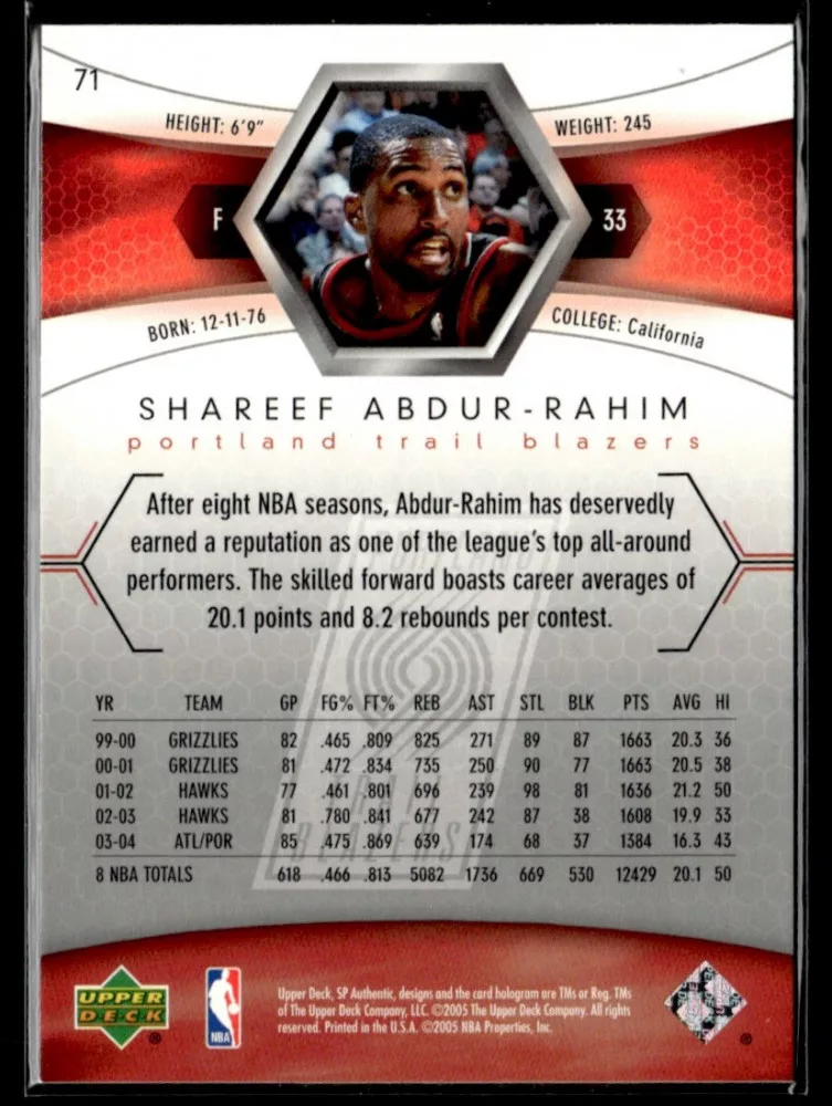2005-06 SP Authentic #71 Shareef Abdur-Rahim