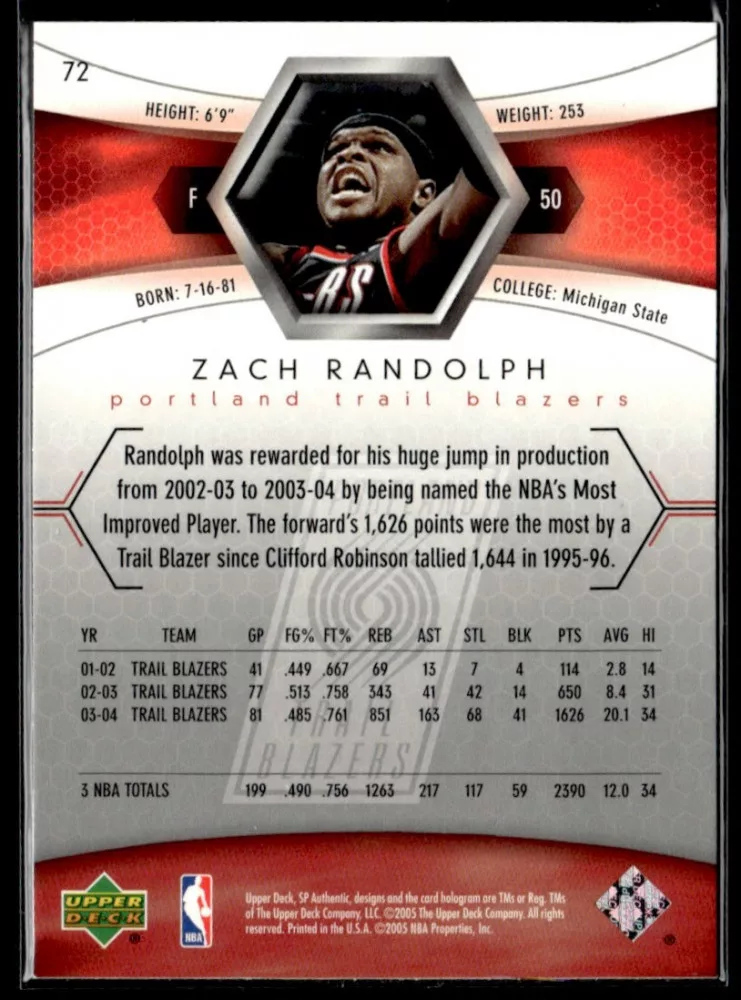 2005-06 SP Authentic #72 Zach Randolph