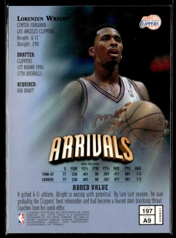 Az eladásra kínált 1997-98 Finest #197 Lorenzen Wright kosaras kártya NM-MT állapotban van. A kosaras kártyákat legtöbb esetben UP Platinum/Standard puha védőtokban és/vagy UP Toploader (kemény védőtok)-ben küldjük.