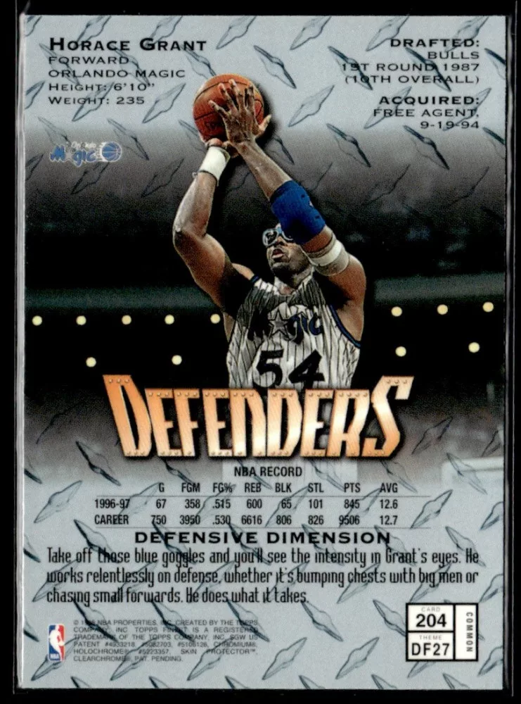 Az eladásra kínált 1997-98 Finest #204 Horace Grant kosaras kártya NM-MT állapotban van. A kosaras kártyákat legtöbb esetben UP Platinum/Standard puha védőtokban és/vagy UP Toploader (kemény védőtok)-ben küldjük.