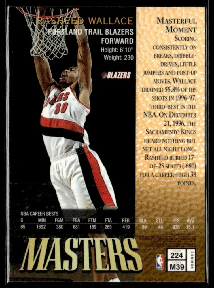 Az eladásra kínált 1997-98 Finest #224 Rasheed Wallace kosaras kártya NM-MT állapotban van. A kosaras kártyákat legtöbb esetben UP Platinum/Standard puha védőtokban és/vagy UP Toploader (kemény védőtok)-ben küldjük.