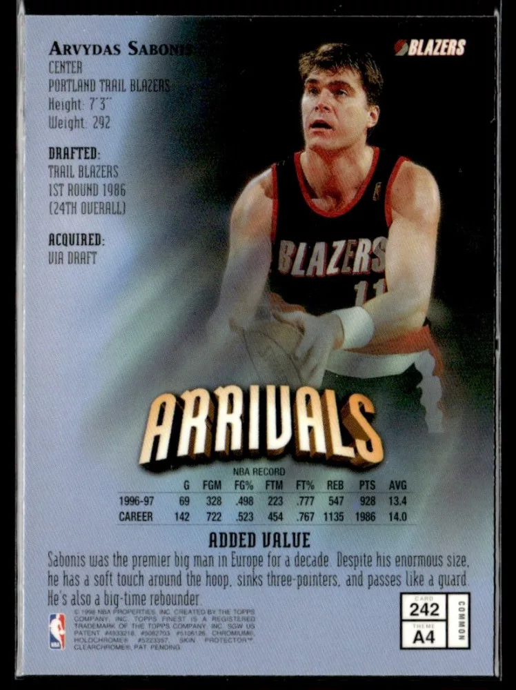 1997-98 Finest  #242 Arvydas Sabonis
