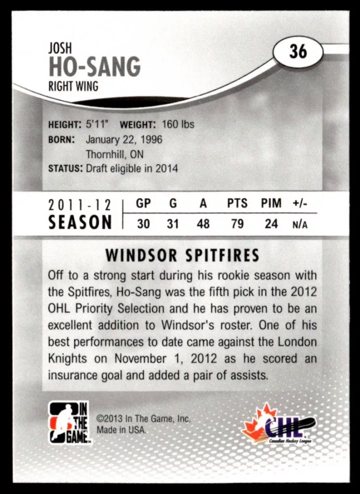 2012 In The Game Heroes and Prospects #36 Josh Ho-Sang