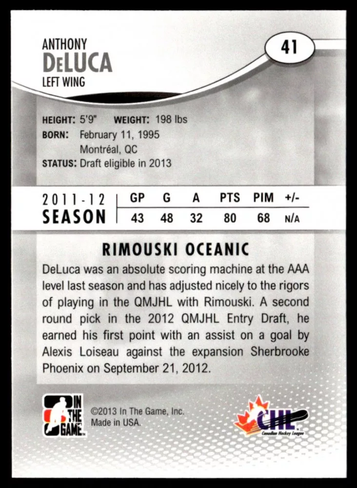 2012 In The Game Heroes and Prospects #41 Anthony DeLuca