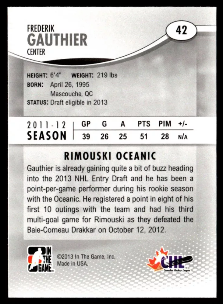 2012 In The Game Heroes and Prospects  #42 Frederik Gauthier