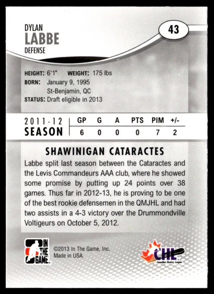 2012 In The Game Heroes and Prospects  #43 Dylan Labbe