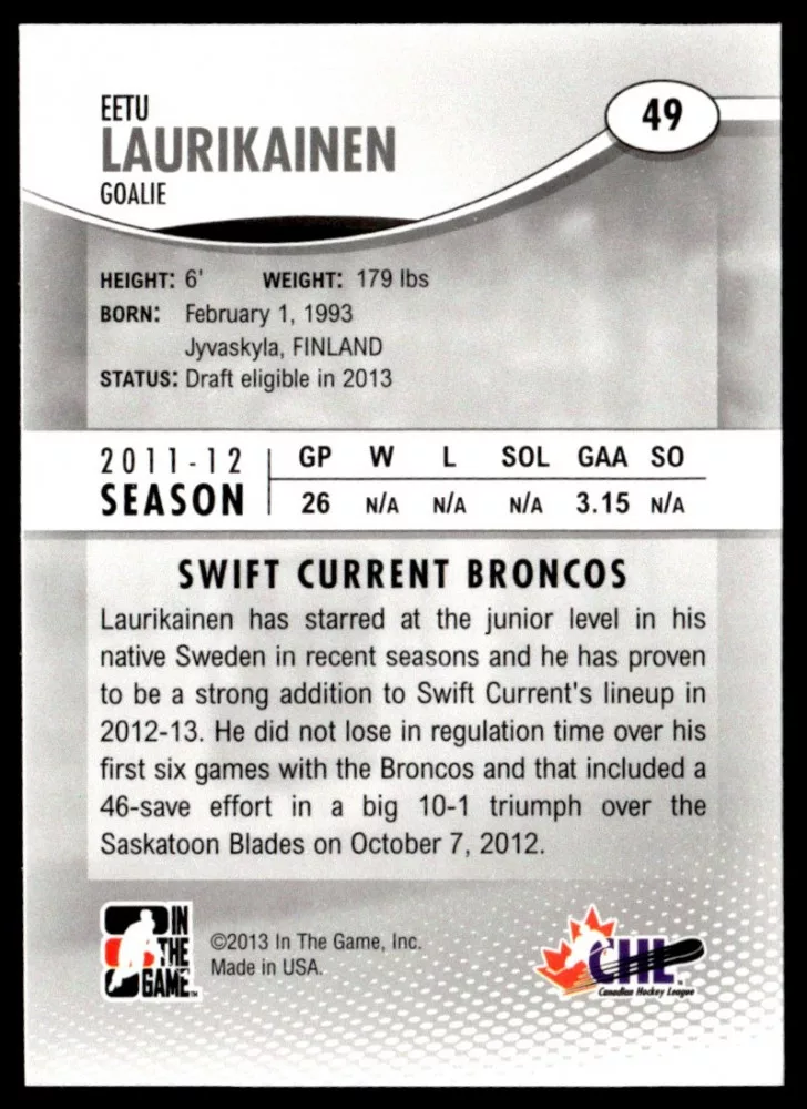 2012 In The Game Heroes and Prospects #49 Eetu Laurikainen