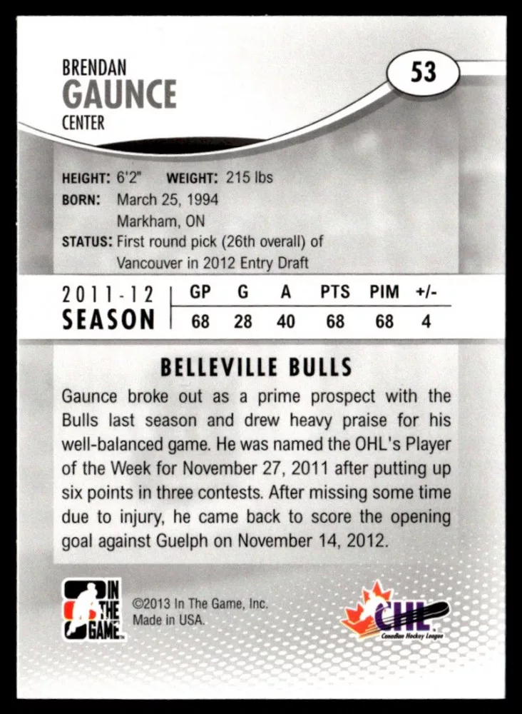 2012 In The Game Heroes and Prospects #53 Brendan Gaunce