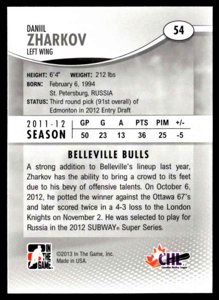 2012 In The Game Heroes and Prospects #54 Daniil Zharkov