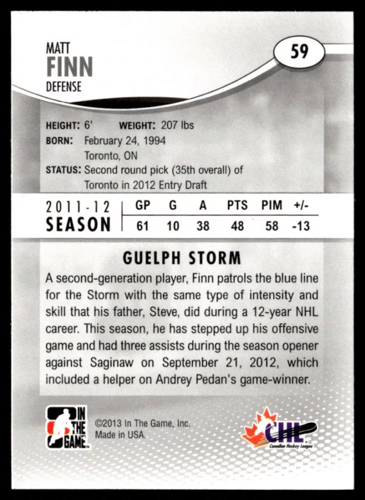 2012 In The Game Heroes and Prospects #59 Matt Finn