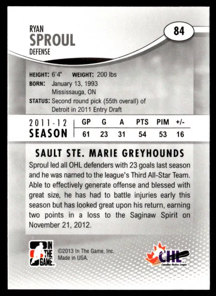 2012 In The Game Heroes and Prospects  #84 Ryan Sproul