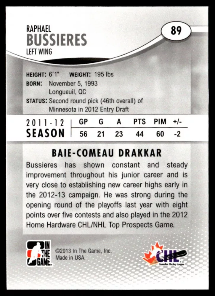 2012 In The Game Heroes and Prospects #89 Raphael Bussieres